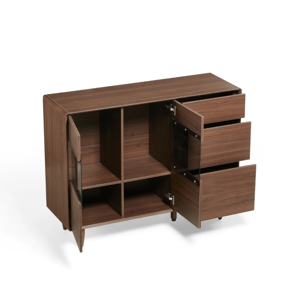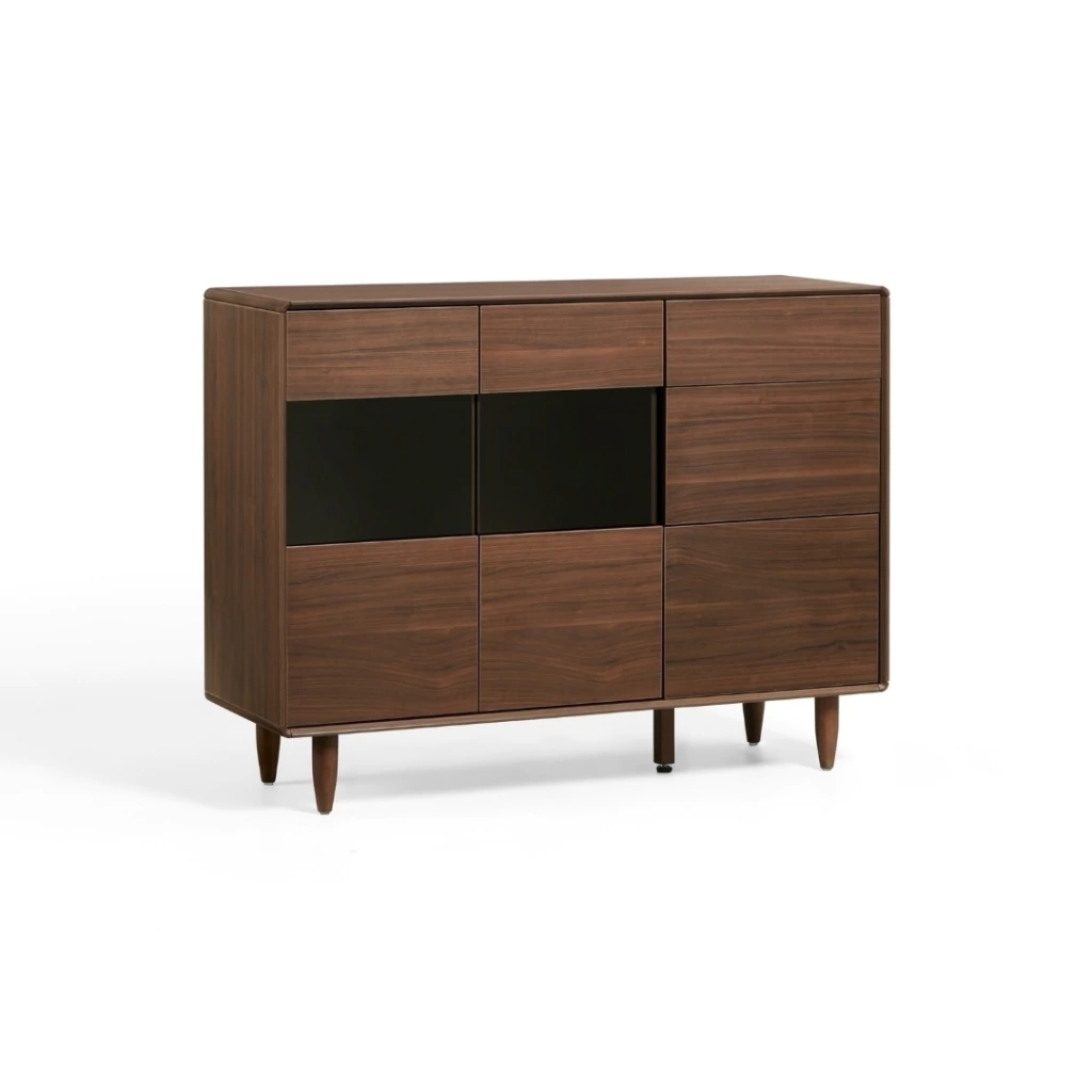 Reinterpreta el guardado con una estética sobria y arquitectónica. Su composición de líneas rectas y proporciones equilibradas aporta una presencia elegante, mientras que la combinación de puertas y módulos centrales genera un frente dinámico y moderno. Una pieza pensada para organizar vajilla, cristalería y objetos de uso diario con discreción, manteniendo el ambiente siempre prolijo y refinado.